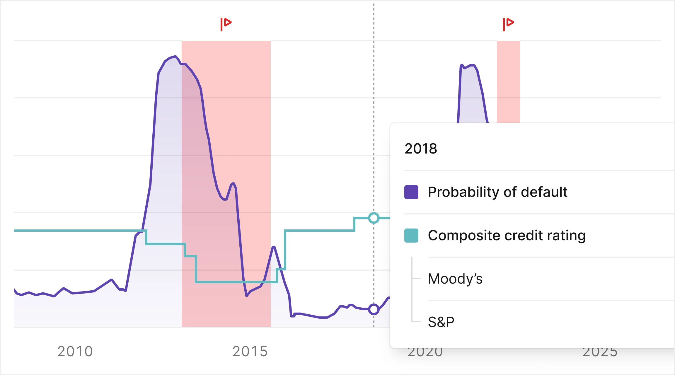 Updated monthly and anchored in evolving fundamentals, the PD signal frequently detects deteriorating conditions well before sovereign credit ratings move.